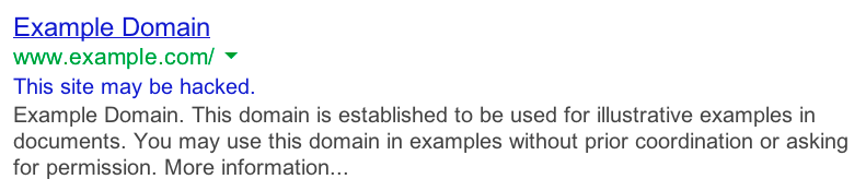 Die Benachrichtigung „Diese Website wurde möglicherweise gehackt" wird erst entfernt, wenn der Webmaster der Website Maßnahmen ergreift.