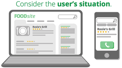 Angenommen, Sie sind eine Website mit Restaurantbewertungen. Wie unterscheidet sich das Verhalten eines mobilen Benutzers von dem eines Desktop-Benutzers? Zunächst einmal sind mobile Benutzer wahrscheinlich unterwegs; sie könnten sogar die Straße entlang gehen, während sie auf Ihrer Website surfen. Sie werden keine Zeit haben, durch mehrere Seiten mit Restaurants zu navigieren, wie sie es auf der Desktop-Site tun. Sie erwarten, dass Ihre Website das GPS des Telefons verwendet, um sie zu finden und ihnen basierend auf ihrer Suche beliebte Restaurants in der Nähe anzuzeigen. Ihre Website kann sogar das Bewertungserlebnis für Mobilgeräte optimieren, indem die beliebtesten Kurzbewertungen angezeigt werden, da Benutzer keine Zeit haben, lange Bewertungen zu lesen.